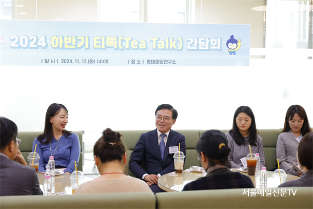 ±è¼­Áß ±âÀÚ / Áø±³ÈÆ ¼­¿ï °­¼­±¸Ã»ÀåÀÌ 12ÀÏ(È­) ÀþÀº Á÷ÀåÀÎÀÇ °íÃæÀ» µè±â À§ÇØ ¸¶°îÁö±¸ ³» À§Ä¡ÇÑ ·Ôµ¥Áß¾Ó¿¬±¸¼Ò¸¦ ¹æ¹®, Á÷¿øµé°ú ƼÅå(Tea Talk) °£´ãȸ¸¦ °¡Á³´Ù.