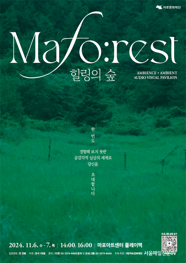 ±è¼­Áß ±âÀÚ / ¸¶Æ÷¹®È­Àç´Ü(´ëÇ¥ÀÌ»ç ¼ÛÁ¦¿ë)Àº ¿À´Â 11¿ù 6Àϰú 7ÀÏ, ¸¶Æ÷¾ÆÆ®¼¾ÅÍ Ç÷¹À̸ƿ¡¼­ µµ½É ¼Ó ¿ÂÀüÇÑ ÈÞ½ÄÀ» ¼±»çÇÒ ÇÁ·Î±×·¥ Èú¸µÀÇ ½£>À» ¼±º¸ÀδÙ. 2022³â ½ÇÇèÀû °ø¿¬ <¾Úºñ¾ðÆ® ¹ÂÁ÷ Äܼ­Æ® ¡®±×´ë¿¡°Ô¡¯>¿¡¼­ óÀ½À¸·Î ½ÃµµÇß´ø ¾Úºñ¾ðÆ® À½¾ÇÀ» ¹ßÀü½ÃÄÑ °ü°´µé¿¡°Ô ÇÑÃþ ±í¾îÁø Èú¸µ °æÇèÀ» Á¦°øÇϰíÀÚ ±âȹµÈ ÇÁ·Î±×·¥ÀÌ´Ù. µµ½É ÇѰ¡¿îµ¥¼­ ÀÚ¿¬À» °æÇèÇÒ ¼ö ÀÖµµ·Ï ¼³°èµÈ »õ·Î¿î ÇüÅÂÀÇ °ø¿¬À¸·Î °íÈ­Áú ÀÚ¿¬ ¿µ»ó°ú ÀÔü À½Çâ, ±×¸®°í ¾Úºñ¾ðÆ® À½¾ÇÀÌ ¾î¿ì·¯Á® µµ½ÃÀÇ ¼ÒÀ½°ú È¥ÀâÇÔ¿¡¼­ ¹þ¾î³ª ÀÚ¿¬ÀÇ ¼Ò¸®¸¦ ÅëÇØ Á¤¼­Àû ¾ÈÁ¤À» ã°íÀÚ ÇÏ´Â Çö´ëÀÎÀ» À§ÇÑ µµÆÄ¹Î µðÅ彺¸¦ °æÇèÇÒ ¼ö ÀÖ´Â ½°ÀÇ Àå¼Ò¸¦ Á¦°øÇÒ ¿¹Á¤ÀÌ´Ù.