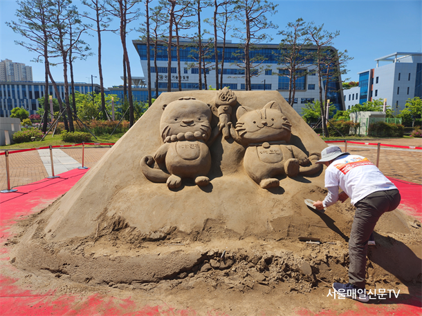 »ó¡Çϴ ij¸¯ÅÍ ¡®Çϸð¿Í ¾Æ¿ä¡¯¸¦ Çü»óÈ­ÇÑ ´ëÇü ¸ð·¡Á¶°¢ ÀÛǰÀÌ ÀÌ»ö º¼°Å¸®·Î ÁÖ¸ñ¹Þ¾Ò´Ù. ÁøÁÖÁ¾ÇÕ°æ±âÀå ¾ß¿ÜÀü½ÃÀå¿¡ Àü½ÃµÈ ÀÌ ÀÛǰÀº Çѱ¹ ÃÖÃÊ ¸ð·¡Á¶°¢°¡ ±è±æ¸¸ ÀÛ°¡ÀÇ ÀÛǰÀ¸·Î, ´ëȸ ±â°£ µ¿¾È ¸¹Àº °ü¶÷°´µéÀÇ ¹ß±æÀ» »ç·ÎÀâ¾Ò´Ù.