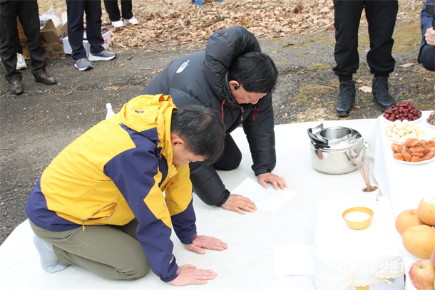 ¿ÀÀü 11½Ã¿¡´Â °æ¸¶Àå Àα٠¿À¸®Áý¿¡¼­ ½Ã»êÁ¦°¡ °ÅÇàµÇ¾ú´Ù. ¿ÀÁ¤Èñ Çâ¿ìȸÀåÀÇ »çȸ·Î ÁøÇàµÈ ½Ã»êÁ¦´Â ÃÊÈ¥°üÀ» ½ÃÀÛÀ¸·Î ¾ö¼÷ÇÏ°í °æ°ÇÇÏ°Ô ÁøÇàµÇ¾úÀ¸¸ç, »êÇàÀÇ ¾ÈÀü°ú ȸ¿øµéÀÇ °Ç°­À» ±â¿øÇÏ´Â Á¤¼º ¾î¸° Á¦·Ê°¡ À̾îÁ³´Ù. À̹ø ½Ã»êÁ¦´Â º½ »êÇàÀÇ ¼º°øÀûÀÎ ½ÃÀÛÀ» ¾Ë¸®´Â Àǹ̸¦ Áö´Ï°í ÀÖ¾ú´Ù.