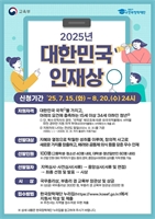 2025³â ´ëÇѹα¹ ÀÎÀç»ó Èĺ¸ÀÚ °ø°³ ¸ðÁý8¿ù 20ÀϱîÁö Á¢¼ö¡¦Áö¿ª½É»çÀ§ °ÅÃÄ Á߾ӽɻçÀ§¿¡ 5¸í Ãßõ ÇÑÈñ±Ô±âÀÚ/ ¼¼Á¾Æ¯º°ÀÚÄ¡½Ã(½ÃÀå ÃÖ¹ÎÈ£)°¡ ±³À°ºÎ¿¡¼­...