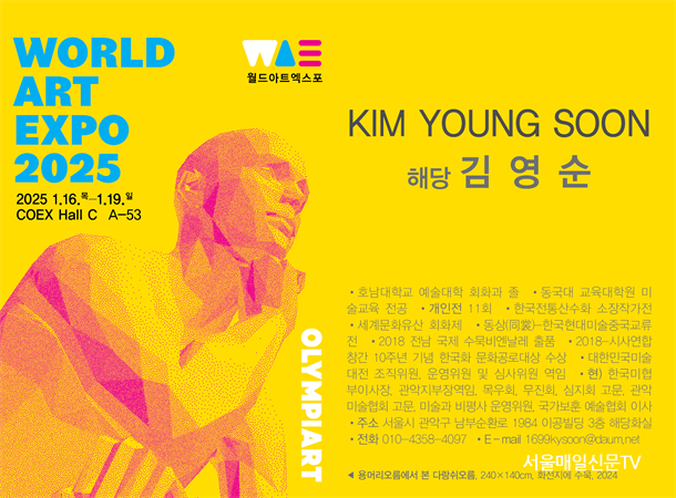 ±è¼­Áß ±âÀÚ / 1¿ù 16ÀϺÎÅÍ 19ÀϱîÁö ÄÚ¿¢½º CȦ¿¡¼­ ¿­¸° ¿ùµå¾ÆÆ®¿¢½ºÆ÷ 2025¿¡¼­ ±è¿µ¼ø È­¹éÀÇ ÃÊ´ëÀüÀÌ ¼ºÈ²¸®¿¡ °³ÃֵǾú´Ù. À̹ø Àü½Ã´Â A-53 ºÎ½º¿¡ ¸¶·ÃµÇ¾î Á¦ÁÖµµÀÇ ¿õÀåÇÑ ÀÚ¿¬À» ¼ö¹¬È­·Î ¼¶¼¼ÇÏ°Ô Ç¥ÇöÇÑ ÀÛǰµé·Î °¡µæ Â÷ °ü¶÷°´µéÀÇ ½Ã¼±À» »ç·ÎÀâ¾Ò´Ù. ƯÈ÷, Á¦ÁÖ ¿ë¿À¸§°ú ´Ù¶û½¬ ¿À¸§À» ´ãÀº ÀÛǰµéÀº ½Ç°æ»ê¼öÀÇ Áø¼ö¸¦ º¸¿©ÁÖ´Â ¾ÐµµÀûÀÎ ½ºÄÉÀϰú ¼¶¼¼ÇÑ ¹¦»ç·Î ³ôÀº Æò°¡¸¦ ¹Þ¾Ò´Ù. °ü¶÷°´µéÀº ±è È­¹éÀÇ ÀÛǰÀ» ÅëÇØ Á¦ÁÖ ÀÚ¿¬ÀÇ ¾Æ¸§´Ù¿ò°ú ±× ¼Ó¿¡ ´ã±ä À̾߱⸦ ±íÀÌ ÀÖ°Ô ´À³¥ ¼ö ÀÖ¾ú´Ù.