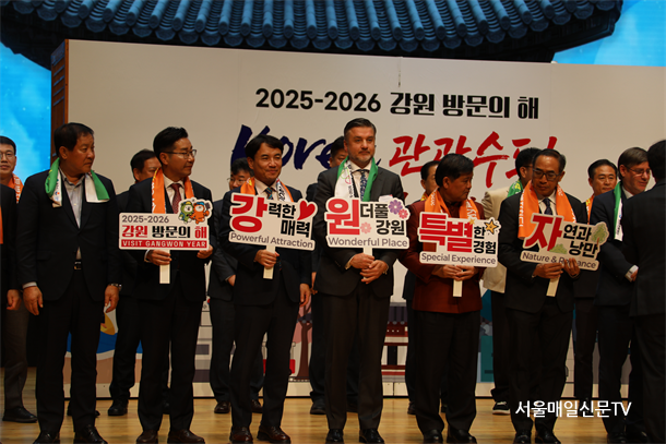 ƯÈ÷ 2025³â °¡À», °­¿øµµ´Â '2025-2026 °­¿ø¹æ¹®ÀÇÇØ' ¼±Æ÷½ÄÀ» È­·ÁÇÏ°Ô °³ÃÖÇß´Ù. ÀÌ ÀÚ¸®¿¡¼­ °­¿øµµÀÇ ¾Æ¸§´Ù¿ò°ú ¸Å·ÂÀ» ¼¼°è¿¡ ¾Ë¸®¸ç °ü±¤°´µé¿¡°Ô ÀØÁö ¸øÇÒ °æÇèÀ» ¾à¼ÓÇß´Ù. ¼±Æ÷½Ä¿¡¼­´Â ¿¹¼ú°ú °¨µ¿ÀÌ ¾î¿ì·¯Áø °ø¿¬ÀÌ ÆîÃÄÁ³À¸¸ç, °­¿ø¹æ¹®ÀÇ ÇØ BI°¡ ¼±º¸¿©Á® ¸¹Àº À̵éÀÇ °ø°¨À» ºÒ·¯ÀÏÀ¸Ä×´Ù.